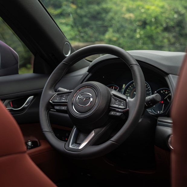 Động cơ SkyActiv 2.5L đặc trưng kết hợp với hộp số tự động 6 cấp, giúp xe vận hành mạnh mẽ, mượt mà.